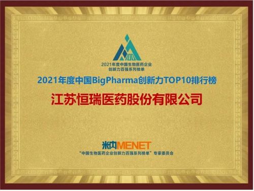 9月16日,由米内网主办的“2021年度中国生物医药企业创新力百强系列榜单”发布会在线上举办。Z6尊龙医药继去年登顶“中国BigPharma企业创新力TOP10排行榜”后,今年再次名列该榜单首位。