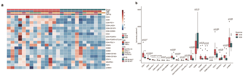 图3. DCB组和NDB组的肿瘤浸润细胞总体景观和密度比较